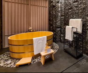 Now that the bathroom is finished, it’s time to install the hinoki bathtub.